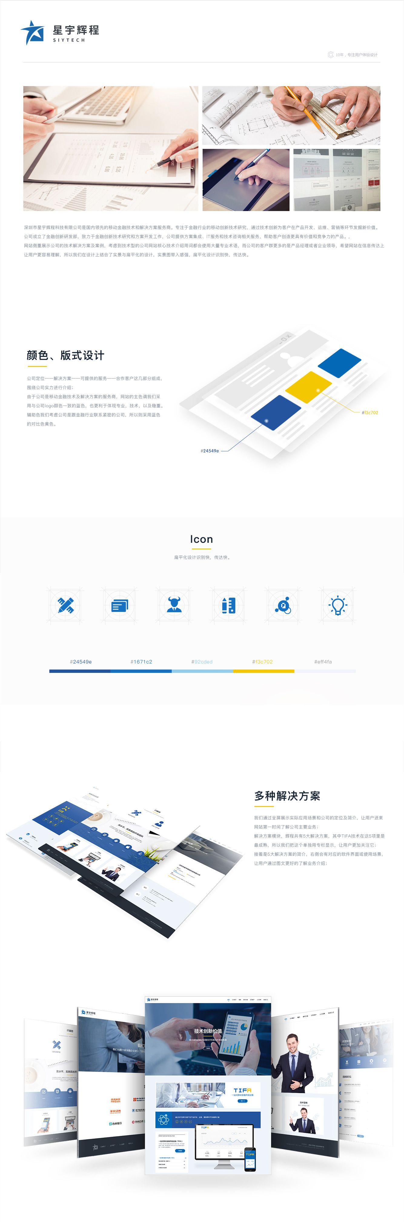 星宇辉程的官网的核心技术介绍涉及大量专业术语,不过由于其面向的客户群主要是产品经理或者企业领导,为了使网站在信息传达上让用户更容易理解, 所以我们在设计上结合了实景与扁平化的设计,实景图带入感强,扁平化设计识别快,传达快。